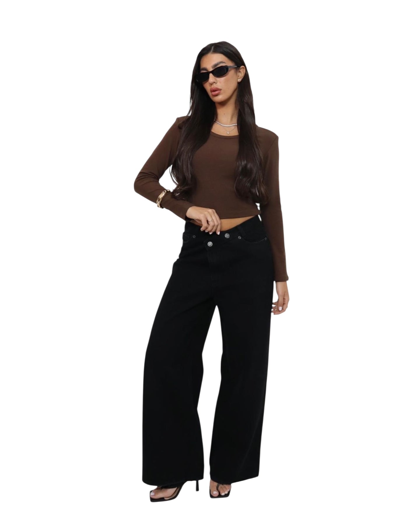 ג׳ינס גזרה רחבה שילוב כפתורים